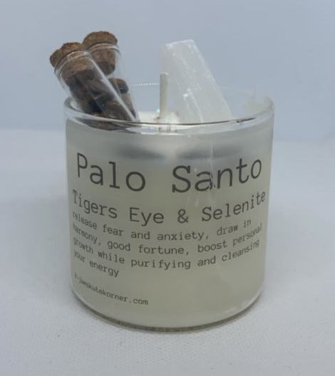 • Load image into Gallery viewer, Palo Santo, Tigers Eye, Selenite Kandle
